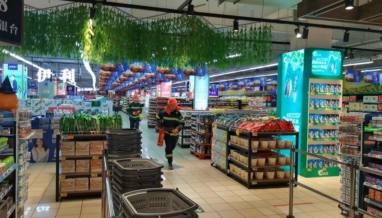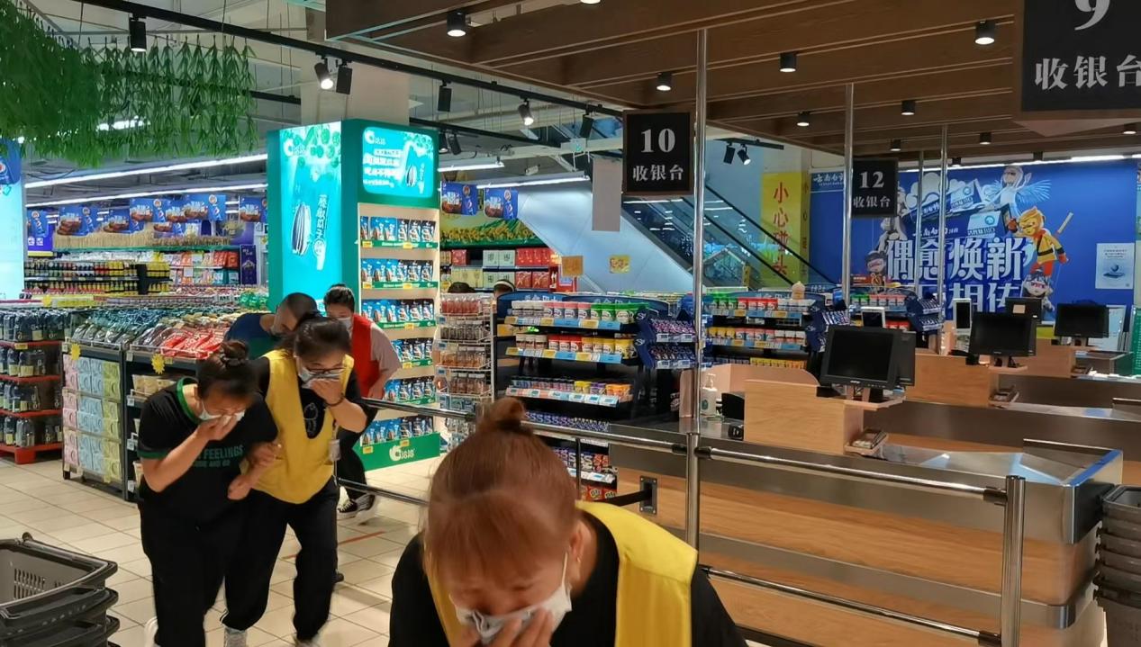 集體觀摩家樂一店應急逃生、消防救援演練。